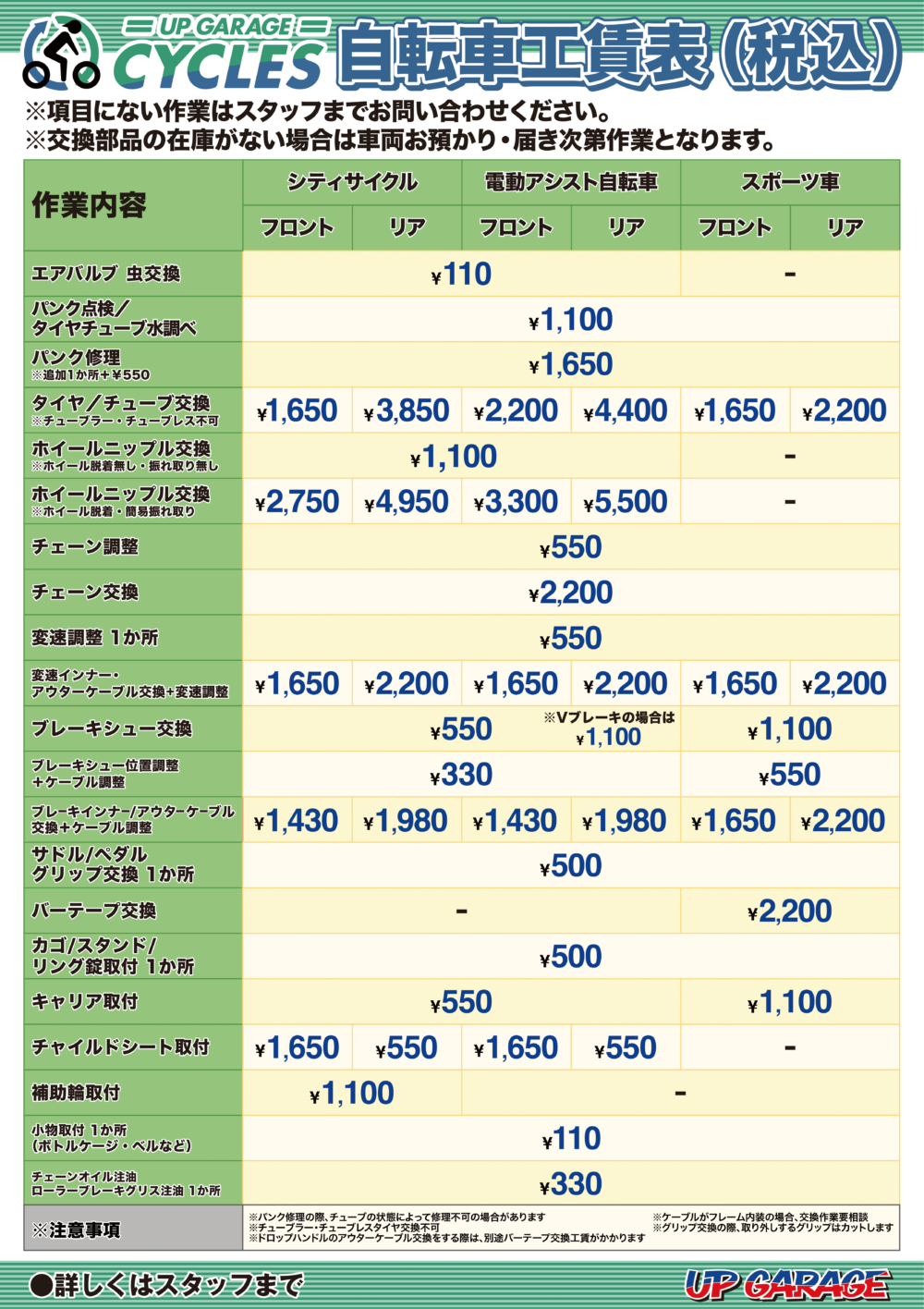 私たちアップガレージサイクルズも自転車の修理、パーツの交換を行っています。