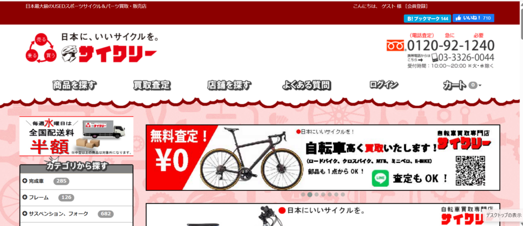 上場企業が運営している安心感があるほか、オンラインショップもあるので手軽に中古自転車を購入できます。